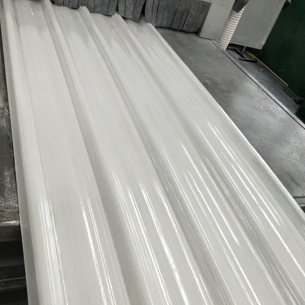 采光瓦要由高性能上膜、強(qiáng)化聚脂和玻璃纖維組成,其中上膜要起到很好的抗紫外線(xiàn)抗靜電的作用,抗紫外線(xiàn)是為了保護(hù)FRP采光板的聚酯不發(fā)黃老化,過(guò)早失透光特性